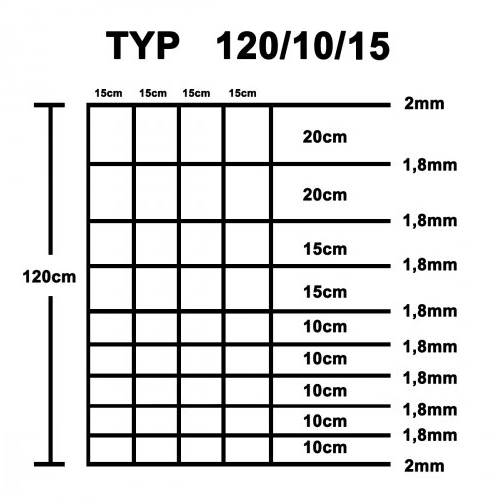 Wildzaun 120cm 50m Verzinkt 1,8/2mm 120/10/15
