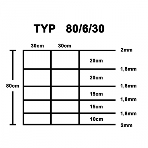 Wildzaun 80cm 50m Verzinkt 1,8/2mm 80/6/30